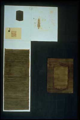 關於'TCHENOGRAMME',這是一冊主要由創作(作品)紀錄,過程, 文件.......等條件所構成的資料;因此僅以最後部分的名稱為題 :關於'TCHENOGRAMME' .而 TCHENOGRAMME一語係1988 年開始於巴黎從事一系列所謂 "文化測量"圖稿(關於空間裝置素描)及書寫創作時所創發的字.