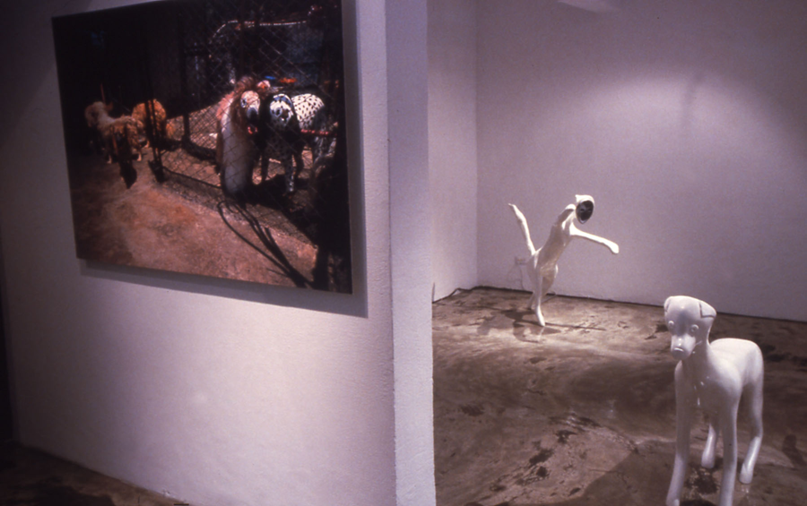 從1999年的作品發現---狗的存在對人類是如此的神奇,因為在地球上再也難找出另一個兩種動物肩並肩一起散步的例子。