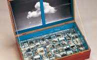 家族黑盒子─家族水族箱,黑白照片、老木箱、玻璃、水、油漆、棉線,1992,23x60x39 cm,日本福岡亞洲美術館收藏