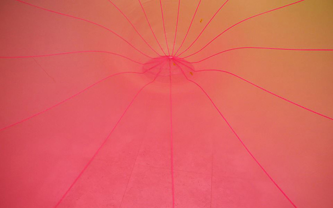 今年春天智邦藝術基金會邀請台灣當代重要的女性藝術家王德瑜,到新竹智邦藝術館舉辦個展,發表第七十九號的充氣裝置作品。王德瑜出身於新竹,畢業於國立臺北藝術大學,屢次在國內外舉辦個展。她特別擅長透過大型充氣作品與各種空間進行對話,打破過往我們習慣以雙眼欣賞藝術的習慣和限制,鼓勵大眾用身體去觸碰、感受作品。而這次王德瑜第七十九號作品,是特別針對智邦藝術館坐落在新竹科學園區內,且附設幼稚園的特殊環境進行發想,擺放咯螢光粉紅、螢光粉橘、螢光綠、螢光黃的四顆大型充氣氣囊,讓白色中性的藝術空間,彷彿長出既美麗又迷幻的巨型蘑菇。歡迎大家來到展場脫掉鞋子後,可以靜靜地坐著、躺著感受氣囊作品與自己的氣息獨處;也可以穿梭其間,任憑肢體與直覺在空間中自奔放!