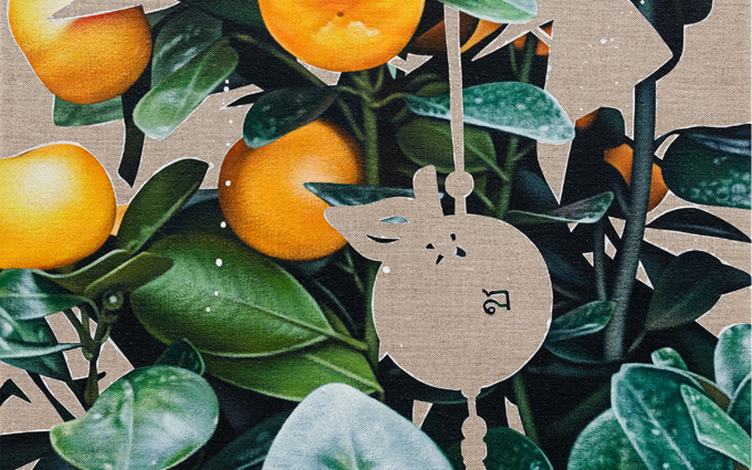 黃舜廷近期的創作轉向,與其博士論文研究完成及其後展開的兩段駐村經驗密切相關。於台東池上與泰國曼谷的駐村過程中,他將「仿擬」(parody)作為實踐方法,刻意調用與重構自身既有作品,使前作成為可被再次啟用的視覺結構。透過模仿、重置與轉譯,原有圖像在異地條件下被拆解與替換,既保留既有語彙,也吸納在地觀察與文化差異,「自我複製」因此不再意味回到原點,而是在重複之中產生偏移,在場域轉換之間生成差異。